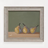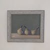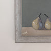 An original contemporary oil painting of still life pears. Housed in a brushed grey contemporary frame.